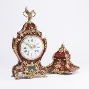 Bois laqué rouge à décor de fleurs et bronze doré, H 17 cm