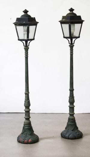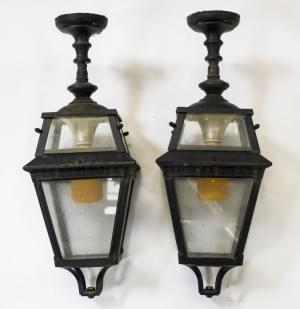 3728. Paire de lanternes d'applique d'extérieur à décor de feuilles