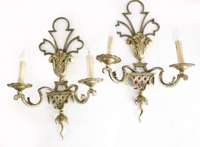 3734. Paire d'appliques à deux lumières dans le style de Baguès