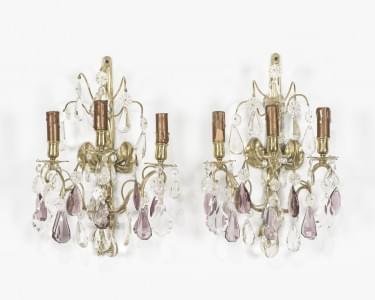 3751. Paire d'appliques à trois lumières dans le style de Baguès