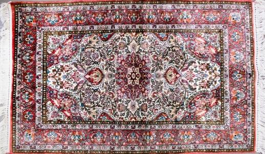 A décor de rinceaux sur fond beige et rose, soie, 166x108 cm