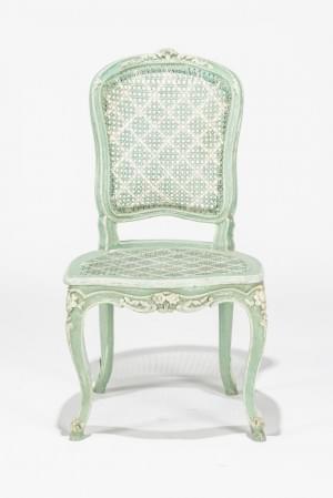 Dossier droit ajouré de balustres à décor marqueté de vase fleur...