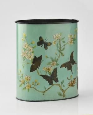 3774. Corbeille à papier à décor de papillons sur fond bleu turquoise