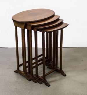 Bois fruitier marqueté à décor de végétaux, circa 1900, 78x72x37...