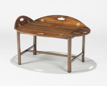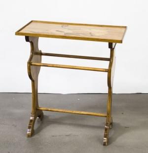 Plateau à décor peint de rinceaux, pieds tournés à entretoise, s...