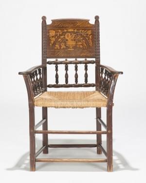 3792. Fauteuil paillé dédicacé Hinnig Heitman et daté Anno 1840