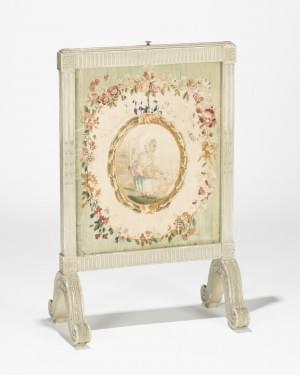 Bois laqué gris, garniture en tapisserie dans le style d'Aubusso...