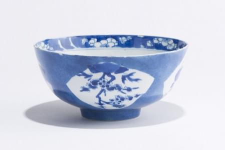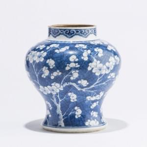 Porcelaine émaillée bleu et blanc à décor de prunus, Chine, époq...