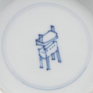 Porcelaine émaillée bleue sur fond blanc, marque à la base, Chin...