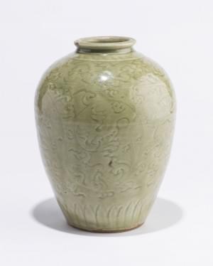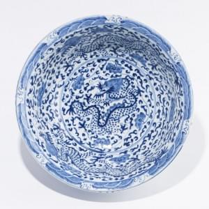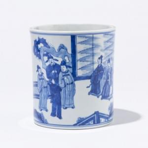Porcelaine émaillée bleu et blanc de rinceaux, Chine, dynastie Q...