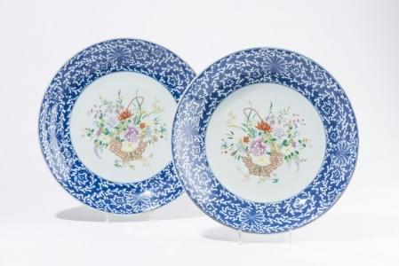 Porcelaine à décor de fleurs et de rouleaux, Chine, époque Qianl...