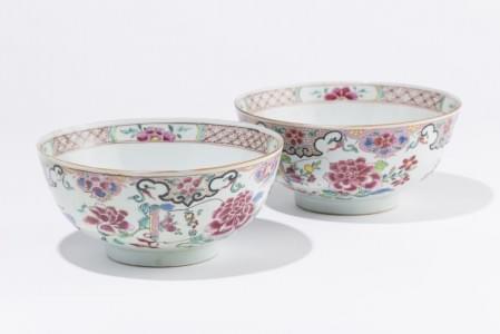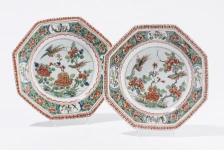 Porcelaine polychrome à décor de personnages et oiseaux, Canton,...