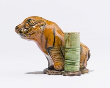 712. Deux vases couverts; l'un à décor de félins en relief, l'autre s...