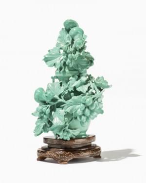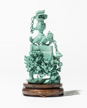 A décor de deux félins sculptés, incrustations de jade vert et d...