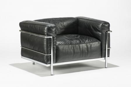 Fauteuil LC2, cuir noir, métal chromé, édition Cassina, numéroté...