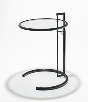 Table d'appoint ajustable E 1027, acier laqué noir et verre, H 7...