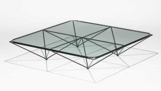 Table basse Alanda, verre translucide, métal laqué noir, éditeur...
