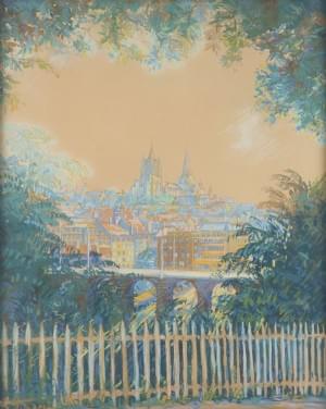 Lausanne et la vallée du Flon, gouache et pastel sur papier, sig...
