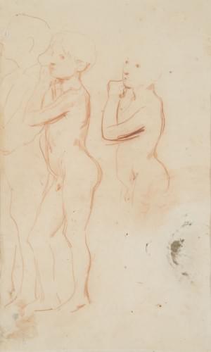 Etude de trois enfants nus, sanguine sur papier, 30x18 cm. Une a...