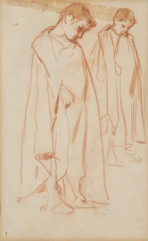 Etude de deux jeunes hommes capés, sanguine sur papier, 29x19 cm...