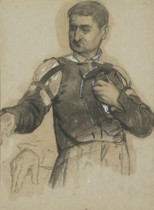 Jeune garçon à la culotte rapiécée, fusain sur papier, 33x21 cm,...