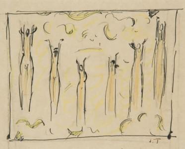 Canard dans les roseaux, fusain, pastel et aquarelle sur papier,...