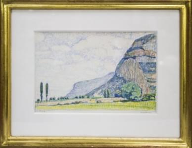 Paysage montagneux, craie sur papier, signée et datée 19 juillet...