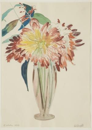 Fleurs sous la neige, gravure sur bois, signée, datée 19 février...