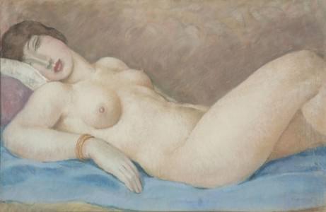 Etude de femme, encre, fusain et crayon gras sur papier, monogra...