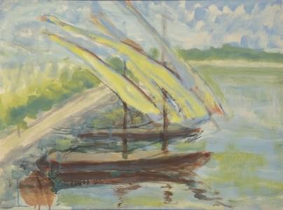 Les barques du Léman, huile sur papier, non signée, 34x45 cm