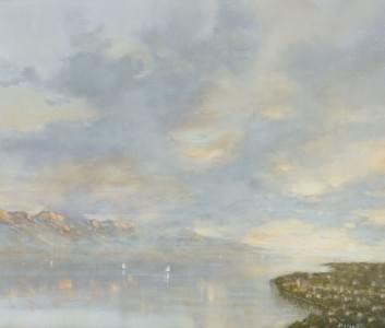 Vue sur le lac Léman, huile sur toile signée, 54 x 45 cm
