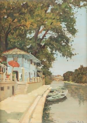 Al Valentino a Torino, huile sur panneau, signée et datée 76, 44...