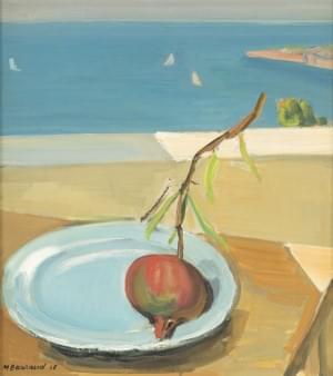 Grenade et la mer, huile sur panneau, signée et datée 46, 50x44...