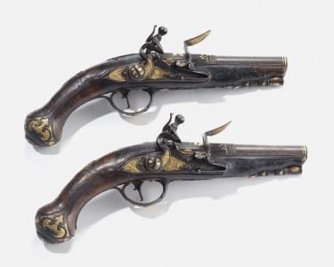 322. Paire de longs pistolets d'arçon à silex signés Lazaro Lazarino,...