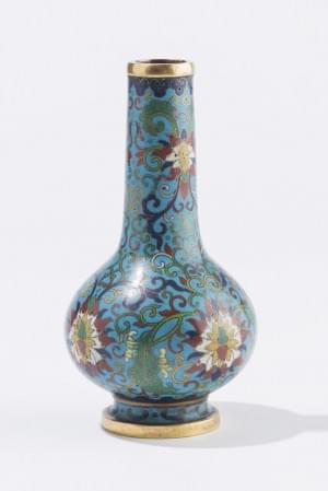 Email cloisonné à décor de fleurs polychromes, marque, probablem...
