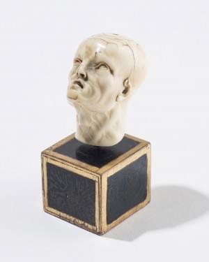 197. Pommeau de canne figurant une tête d'homme les traits émaciés
