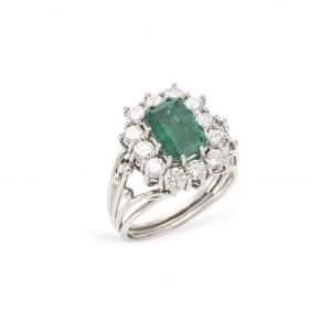 119. Bague sertie d'un doublet émail émeraude entouré de diamants tai...