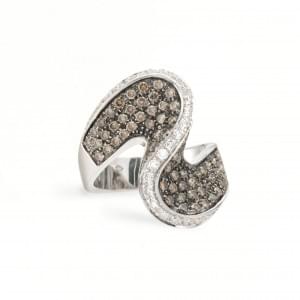 122. Bague vague pavée de diamants blancs et bruns