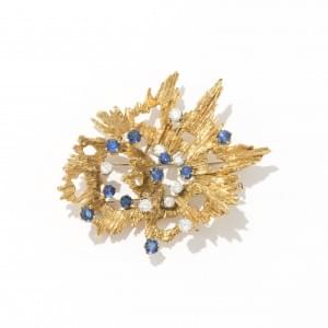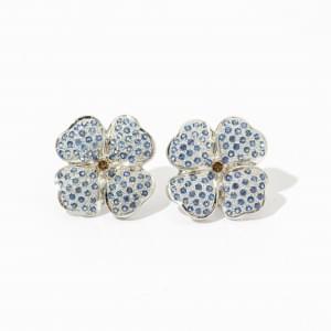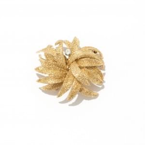 123. Paire de clips d'oreilles fleur sertis d'un diamant brun et pavé...