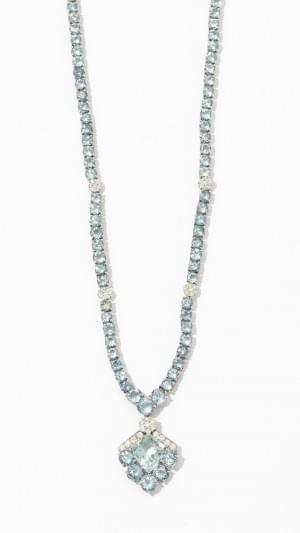126. Collier serti d'aigues-marines taille brillant et de diamants ta...