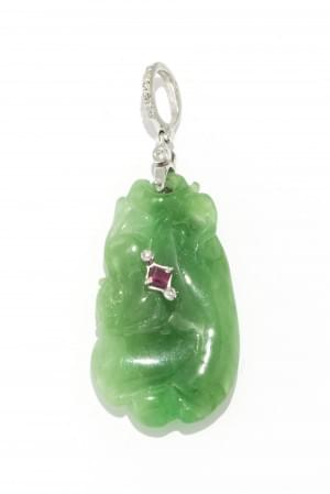 129. Pendentif en jade serti d'un rubis et de diamants