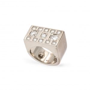 132. Bague chevalière sertie d'un diamant taille ancienne