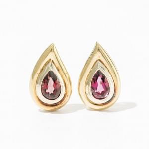 134. Christofle, paire de clips d'oreilles gouttes sertis de grenat