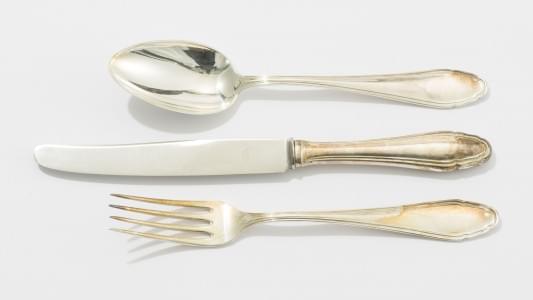Jezler, argent 800, comprenant: 11 fourchettes, 10 cuillères et...