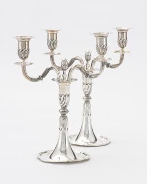 159. Paire de chandeliers trompettes à trois feux