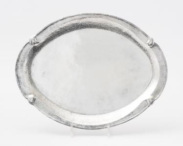 176. Plateau ovale martelé Art Déco orné de quatre volutes