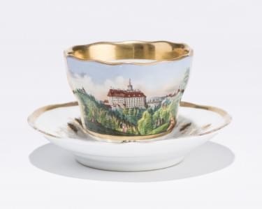 182. Grande tasse à décor d'une vue du château de Fürstenstein (Książ...