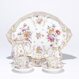 Paris, porcelaine, comprenant: 6 tasses, théière, pot à lait, su...