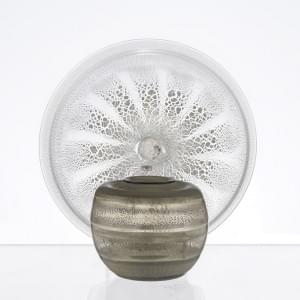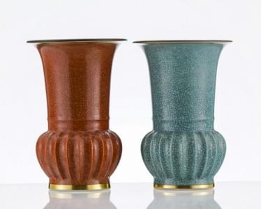 Deux vases, céramique émaillée à décor de bandeaux et lignes arg...