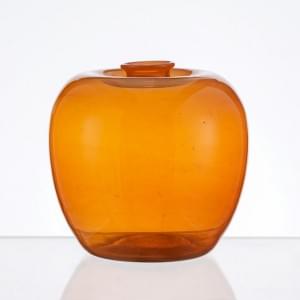 Vase ovoïde orange acidulé, verre soufflé, marque sous la base,...